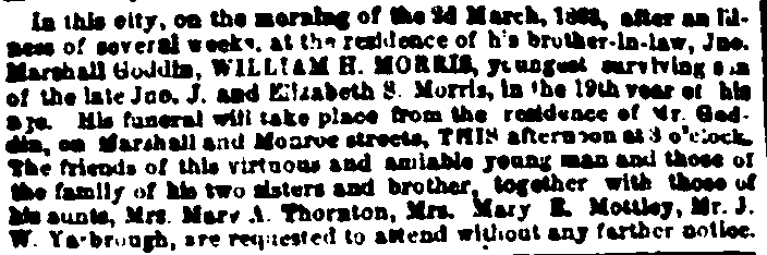 William H Morris obituary, Richmond Whig, March 3, 1863
