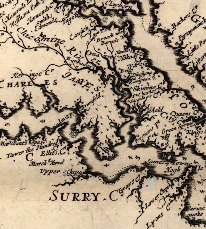 [15] Surry County, Virginia Deeds Wills Etc. No. 2 1671-1684, p. 61; Wills and deeds (Surry County, Virginia), 1652-1907 (familysearch.org); accessed 17 October 2022