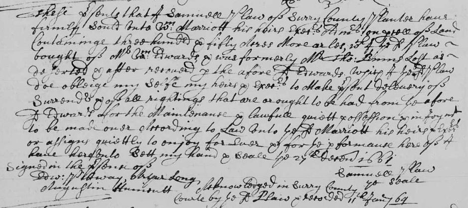 [5] Surry County Deeds, Etc. No. 1 1652-1672, p. 248; Wills and deeds (Surry County, Virginia), 1652-1907 (familysearch.org); accessed 7 November 2022