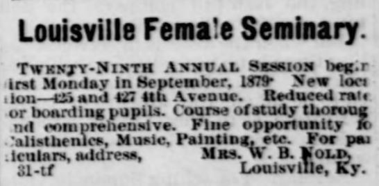 [3] Louisville. Kentucky City Directory 1879, U.S. City Directories, 1822-1995; Ancestry.com