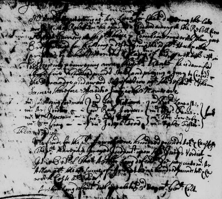 “For during the late most wicked rebellion he assumed a command amongst the rebel crew, which kept garrison at the plaintiff’s house & combining with them gave order and command for killing and destroying the said plaintiff’s stock and provisions by which notorious villainy of his, as well as the rest, in destroying & conveying away the plts. [plaintiffs] Estate.” A jury found Long guilty and awarded Allen 1,400 pounds of tobacco plus his costs to bring the suit.[2]