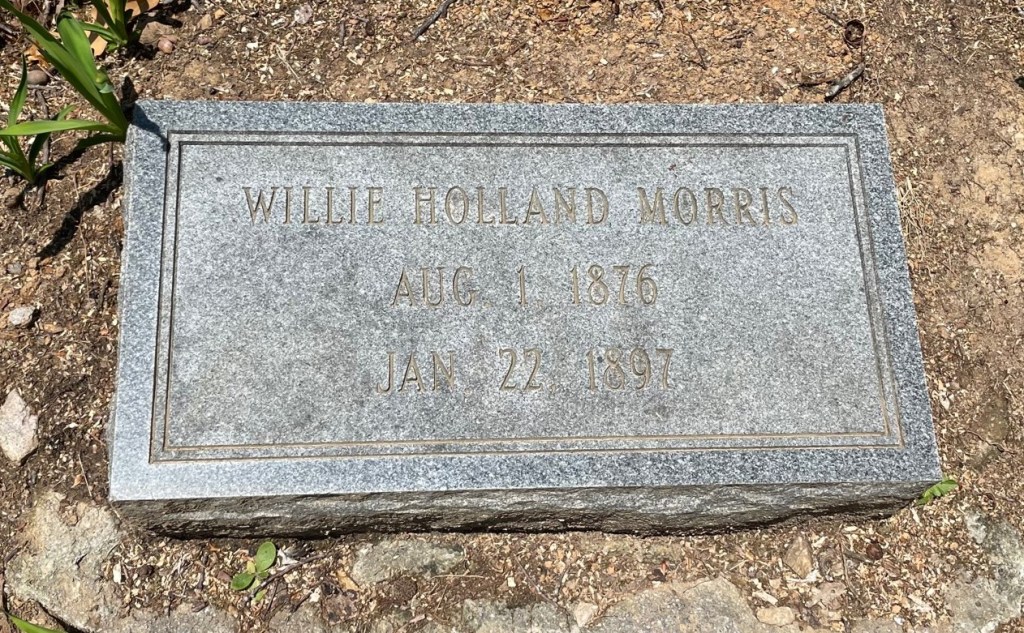 There is a gravestone at Jetersville Methodist Church in Amelia for Willie Holland Morris who was the youngest son of my 2x great-grandparents John Rives & Ann Octavia (Vaughan) Morris. Willie was born at Creekland farm near Jetersville where he lived the entirety of his short 20 year life. According to my grandmother Rebecca Blanton (Morris) Eisenbeis (1913-1994), her uncle Willie died from lockjaw due to an accidental gunshot wound to his foot he sustained while hunting. He never married nor had any children. Virginia did not require that counties keep death certificates from 1896-1912 so Willie doesn’t have one of those either. Just a story and a gravestone are all that remain.