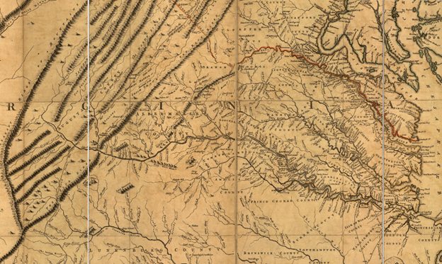 [1] Fry, J., Jefferson, P. & Jefferys, T. (1755) A map of the most inhabited part of Virginia containing the whole province of Maryland with part of Pennsylvania, New Jersey and North Carolina. [London, Thos. Jefferys] [Map] Retrieved from the Library of Congress, https://www.loc.gov/item/74693166/.