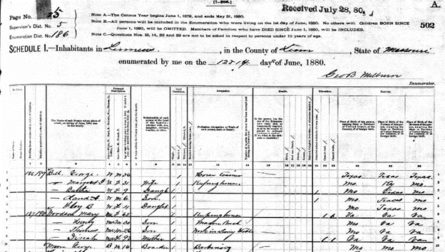 [19]1880 United States Federal Census; Census Place: Linneus, Linn, Missouri; Roll: 700; Page: 502A; Enumeration District: 186; Ancestry.com
