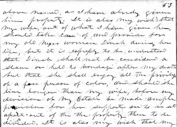 In addition to directing certain lands sold to pay his debts, bequests of land to his wife and sons, he divided his enslaved people among his wife and children:
