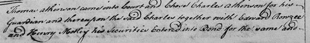 The move was temporary as Thomas Atkinson was back in Essex County on 20 March 1749, when he appeared at court and chose his uncle Charles2 Atkinson as his guardian.[10]