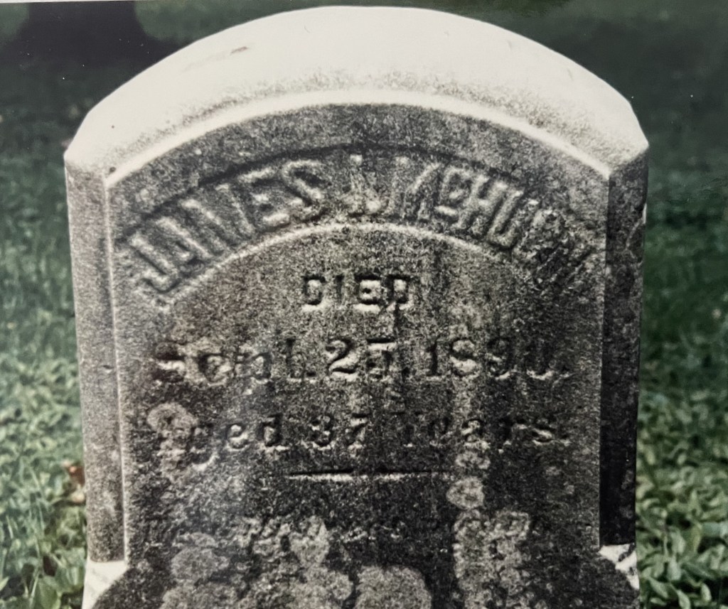 If James I. McHugh was born in Pennsylvania [or perhaps born in Ireland and immigrated to PA], he should be in the 1860 and/or 1870 census records. At 37 years old on 25 September 1890, he was born between 26 Sept 1852 – 24 Sept 1853 so he should be listed as 7-8 and 17-18, respectively. But cenus records are known for age inaccuracies.