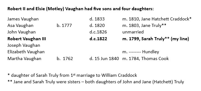 [16] Will of Robert Vaughan II. Nottoway County, Virginia Will Book No. 2, p. 226; https://www.familysearch.org/ark:/61903/3:1:3QS7-99PX-646J?i=447&cat=379144