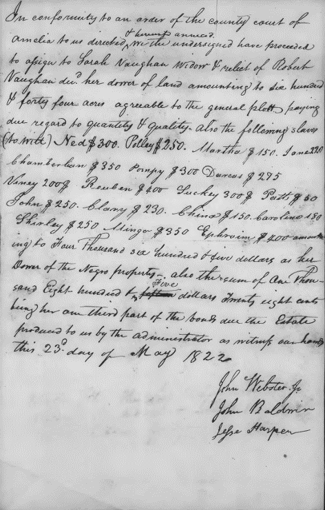 [20] Amelia County Chancery Suits No. 1824-016 (Sarah Vaughan, Widow vs. Admr. of Robert Vaughan, etc.) and No. 1824-020 ( Dist(s) of Robert Vaughan v. Admr. of Robert Vaughan, etc.), Virginia Chancery Records, Library of Virginia Digital Collections.