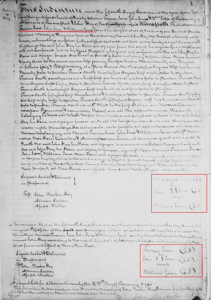 [9] Albemarle County, Virginia Deed Book No. 3 1761-1764, p. 1; https://www.familysearch.org/ark:/61903/3:1:3Q9M-CS4X-5S61-X?view=fullText&keywords=William%20Jones&groupId=M9NL-N27