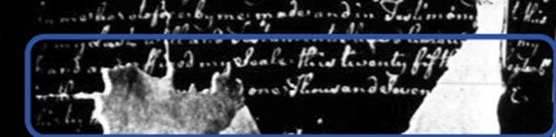 Below is my transcription of the date portion of the will. I have added the missing words in [brackets] considering typical will wording as well as letter and word spacing. Nothing scientific here – just for fun!