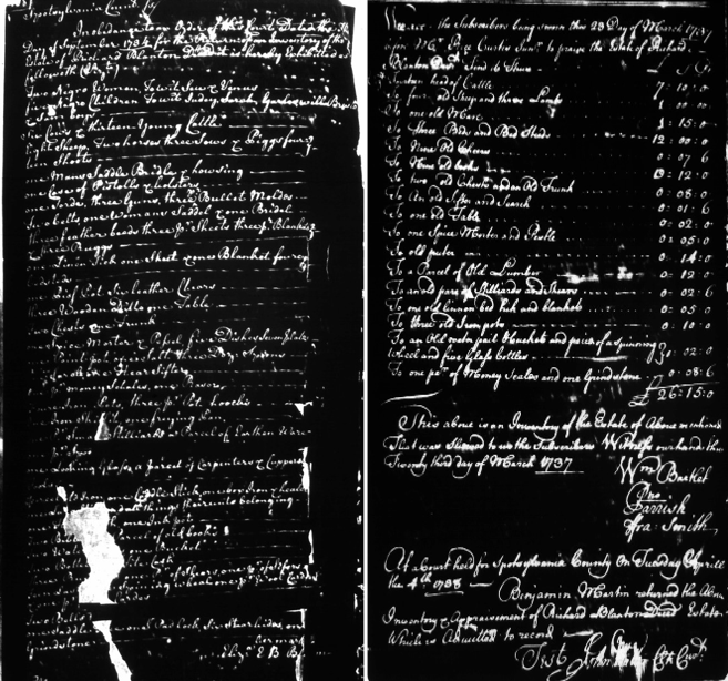 At left is Richard Blanton’s 1734 inventory and at right his 1738 inventory and appraisal.