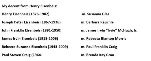 Of Heinrich Eisenbeis’s life in Europe, I can only pass along some family history shared by Uncle Joe. When I became interested in my family history at age 11 [1975], I wrote letters to relatives that my grandparents suggested – their siblings and cousins and, in a few cases an Aunt or Uncle. In each I asked if they could tell me anything about our ancestors and if they had any photographs of our ancestors. One of those people was my grandfather’s uncle, Joseph Jacob Eisenbeis (1890-1984), whom my grandfather called “Uncle Joe.” He lived in Louisville, and we corresponded from 1976 until shortly before his death.