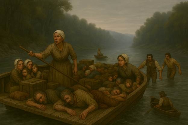 [28] Craig, P. Steven. (2026, March). Illustration of Ann (Woods) Sharp steering the boat., 1794. [Concept by author, rendered with AI assistance]. Perplexity AI (GPT Image 1).